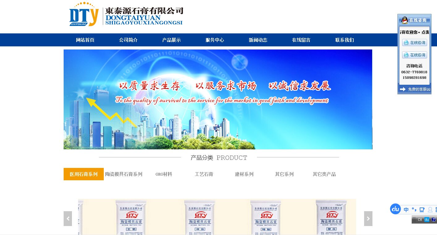棗莊東泰源石膏有限公司,成立于2008年9月11日,座落在嶧城區(qū)東環(huán)吳林BRT車站南1.5公里處(棗臺(tái)路南側(cè)),主營(yíng)精密石膏粉研究開發(fā)和生產(chǎn)銷售。公司固定資產(chǎn)投資1200多萬元,年銷售額超過1000萬元,占地20000平方米。 棗莊市嶧城區(qū)石膏資源豐富,依托當(dāng)?shù)貎?yōu)質(zhì)、豐富的纖維石膏(俗稱白石膏)資源,利用國(guó)外先進(jìn)的生產(chǎn)設(shè)備和技術(shù),生產(chǎn)加工陶瓷、醫(yī)用、建材等行業(yè)三大系列十多個(gè)品種的精密石膏粉。產(chǎn)品廣泛應(yīng)用于陶瓷、工藝品、琉璃、鞋業(yè)、醫(yī)療、食品、教育、新型建材等方面,在國(guó)內(nèi)外市場(chǎng)上享有很高的信譽(yù)。